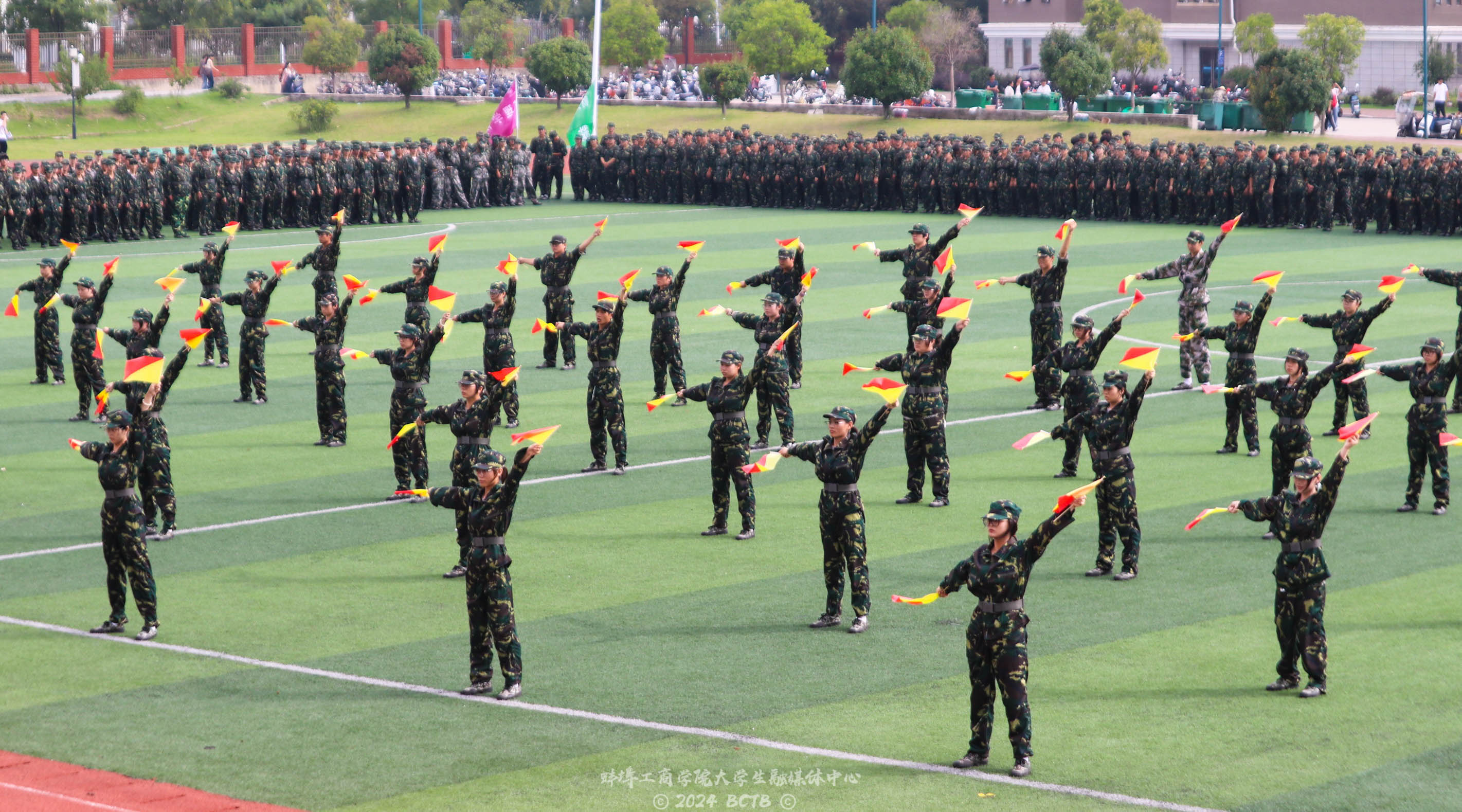 金秋九月,风高气爽。七名着装整齐的退役大学生士兵,迈着矫健的步伐,喊着洪亮的口号向母校报到。随后,22个队列方阵军容严肃、步履铿锵、动作规范。手旗、军体拳、刺杀操三个表演方阵一招一式刚劲有力,尽显青春热血和昂扬斗志,演绎了新时代大学生的爱国之心和报国之志,也充分展示了军训的优良作风和丰硕成果。