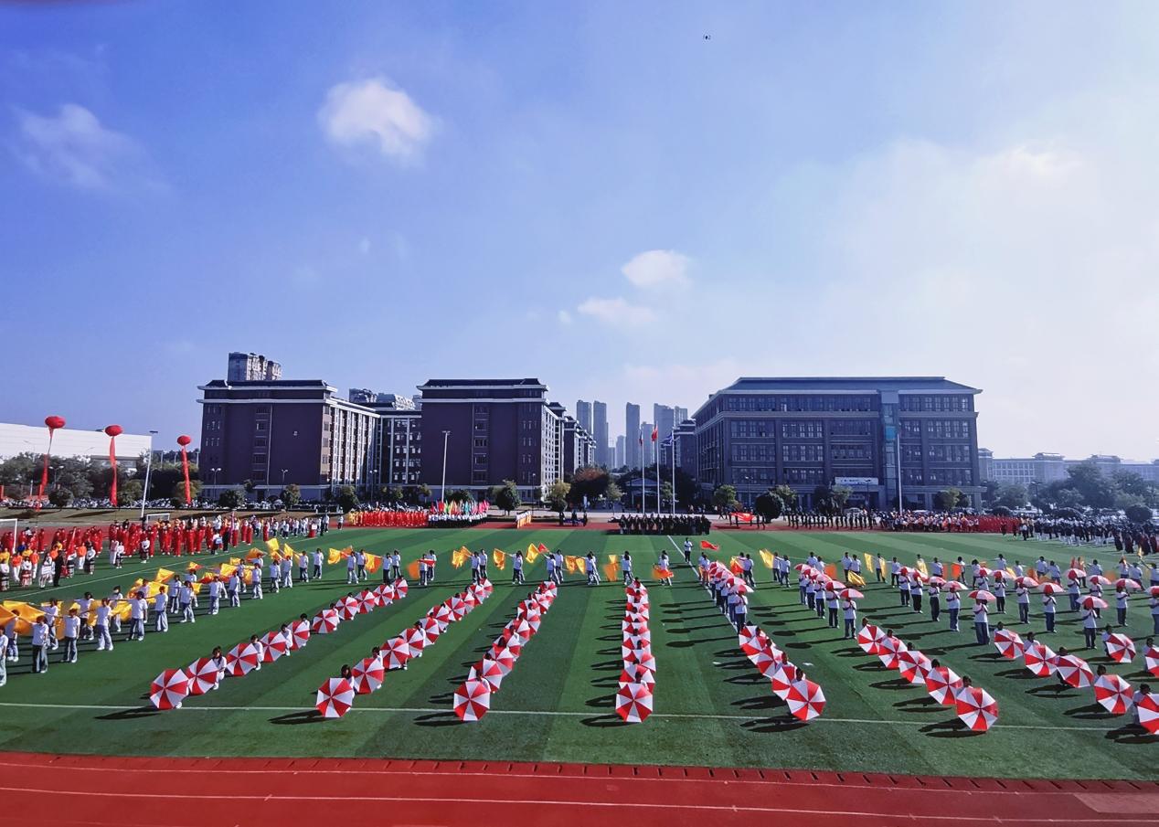 开幕式上,文体演出震撼上演,千余名师生给全场观众带来了一场美轮美奂的视听盛宴。《精武之魂》以太极之美展现中华武术的博大精深,舞狮舞龙表演《象王行》用国风弘扬传统文化精髓,《灯火里的中国》以朝气蓬勃的团体操为运动员们加油助威。
