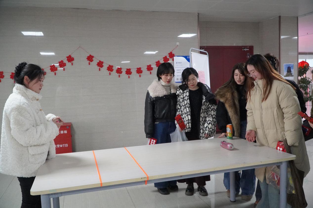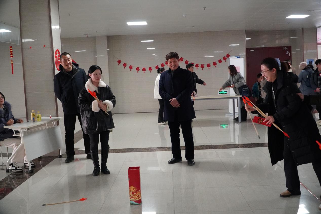 联欢会前后还开展了掼蛋比赛决赛和系列游园活动,图书馆一楼大厅设置了猜灯谜、套圈、投壶、推推乐、红杯投球等项目,教职工们积极参与,热情高涨,现场气氛活跃欢乐,热闹非凡。