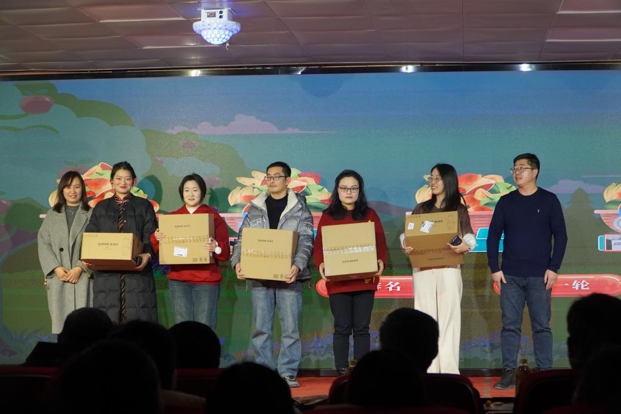 联欢会节目异彩纷呈,形式多样。歌声婉转动听,口琴、手风琴演奏旋律悠扬,“舞蹈演员”们翩翩起舞,魔术师变出一个个新春惊喜……现场气氛热烈、高潮迭起,掌声不绝。老师们通过精心准备和精彩呈现,展现出昂扬向上的精神风貌,为大家带来了视听盛宴的同时,也传递了对新年的美好祝愿。演出期间穿插进行了互动游戏,共角逐出一等奖1个、二等奖5个、三等奖 10 个、四等奖 15 个,学校各战线的优秀代表为获奖者颁奖。