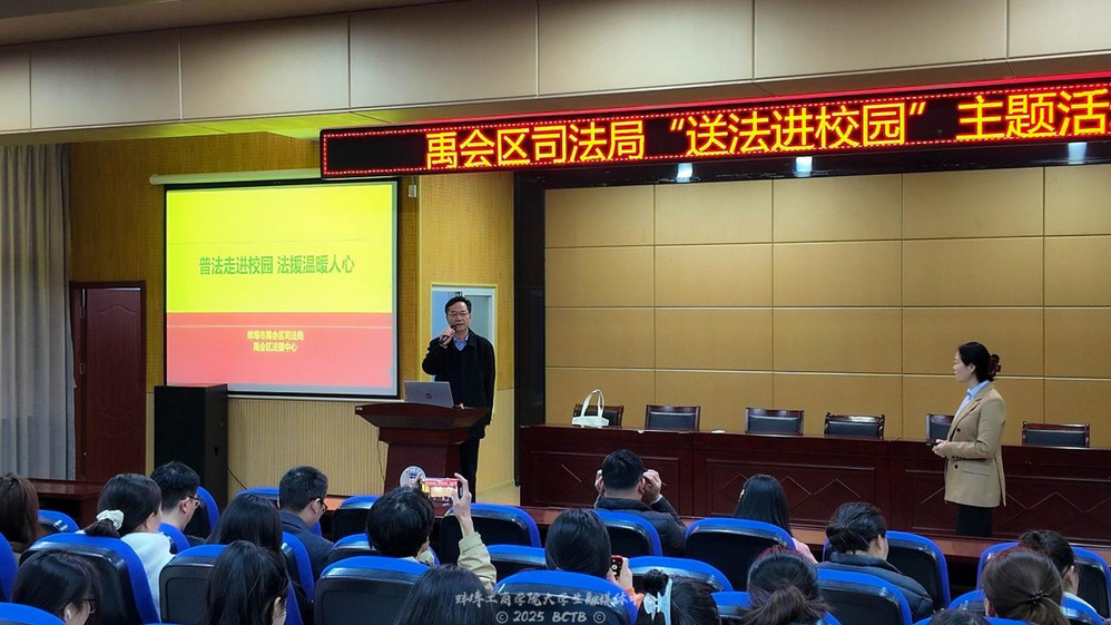 此次“送法进校园”活动以“宣讲+互动”的形式,将法治的种子播撒进青年心田,为构建平安校园注入法治动能。未来,蚌埠工商学院与禹会区司法局将继续深化联动,通过常态化普法活动,为师生成长保驾护航,共绘法治校园新图景。(文/梅景全 图/大学生融媒体中心 审核/房福建)
