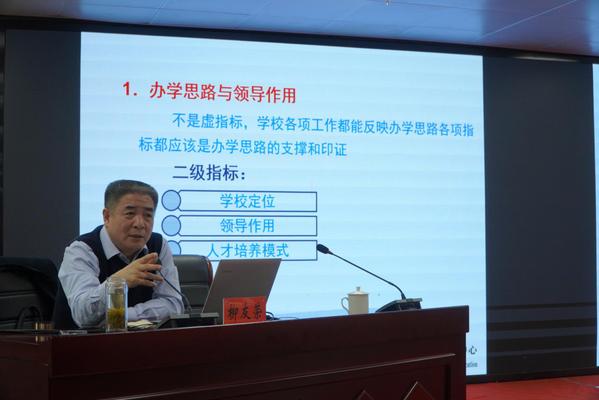 会议邀请教育部本科教育教学评估专家,博士生导师,安徽艺术学院校长柳友荣教授作“本科教学工作合格评估”专题辅导报告。他从合格评估指标体系的特点、合格评估指标解读、专家组现场考察评估结论及其标准、合格评估工作怎么做四个方面进行讲解,着重围绕《教育部办公厅关于开展普通高等学校本科教学工作合格评估的通知》(2011)2号文件规定的7个一级指标、20个二级指标、40个观测点逐一展开,仔细解读,并分别针对董事会、校领导、各职能部门与二级学院等不同层级,以及教师与教学、教学管理、学生与学习等不同类型的人员如何做好迎评促建工作给予指导。专题辅导报告运用大量鲜活案例,就“本科教学工作合格评估怎么看、怎么办”作了深入讲解,使参加培训的全校教职员工更清楚地理解了本科教学工作合格评估的深刻内涵,进一步明白了各自的职责所在以及工作思路,获得了良好的培训效果。(文、图/李俊杰 审核/阮进兵、汪金龙)