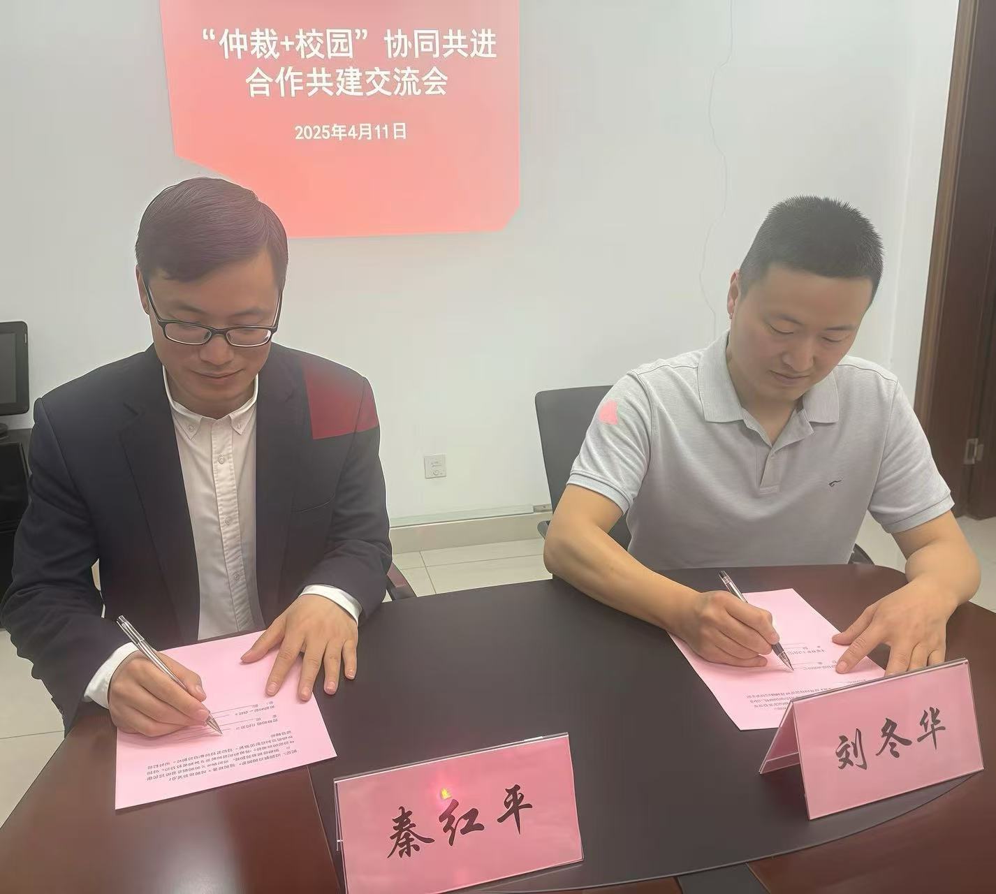 座谈会后,双方现场签署《校地合作共建意向书》,就人才培养与教学、学术研究与成果交流和服务社会与法治建设三个方面达成初步合作意向。(图/龙彦羽 文/曹晓纯 审核/刘冬华)