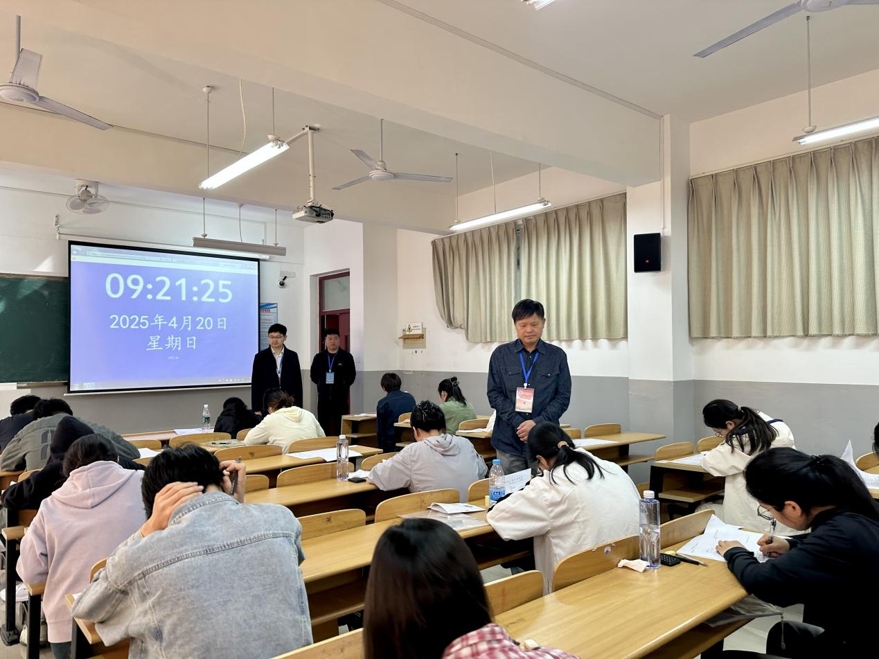 4月20日上午,我校举行了2025年专升本招生专业课考试。省教育招生考试院巡考人员在校长刘福成及教务处、质量监控与评估中心等部门负责人陪同下深入考点检查指导工作。
