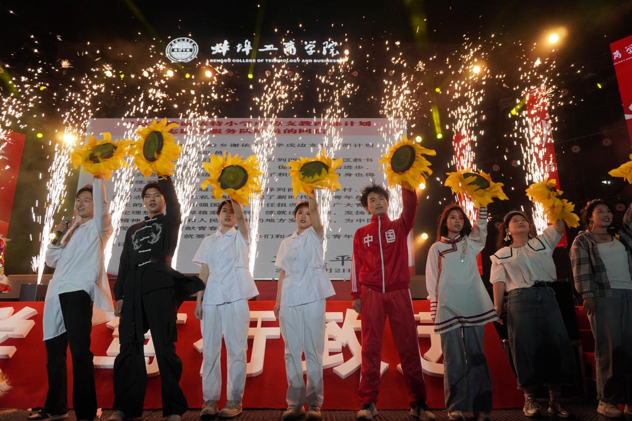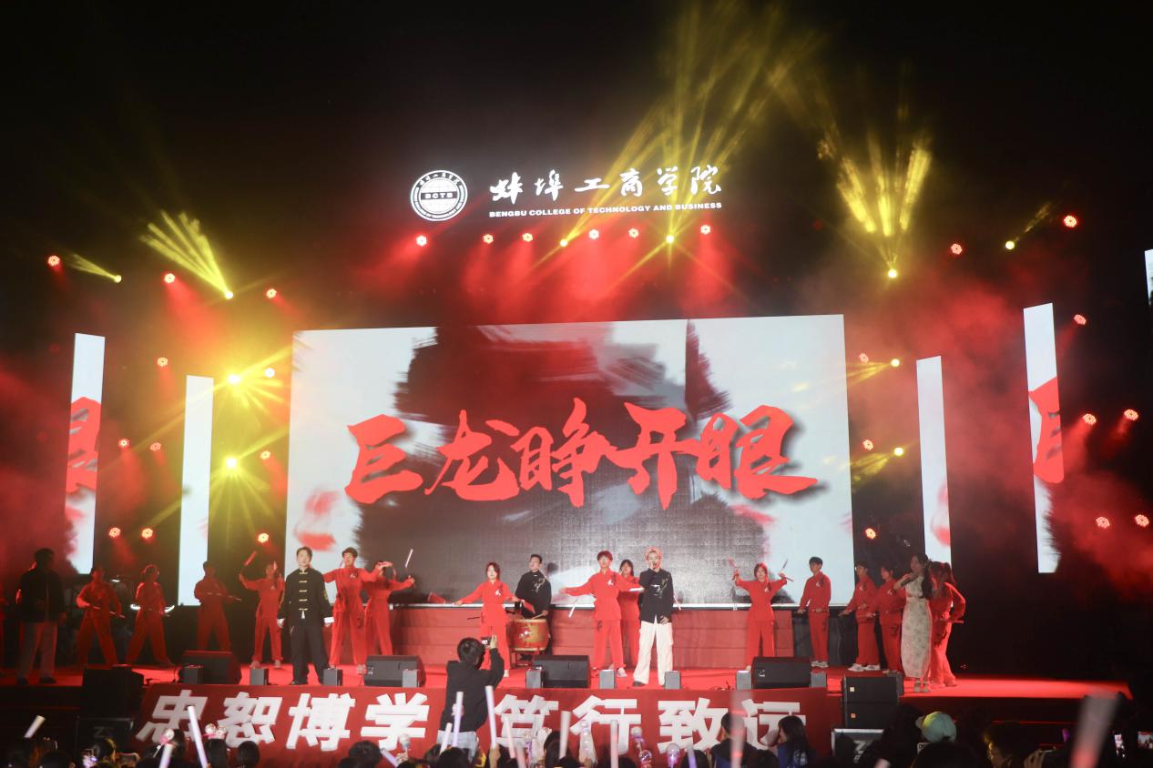 来自电子信息学院、安徽财经大学、蚌埠学院的五名同学组成的逻辑失控乐队给晚会带来了一个高燃开场,一首《都选C》以桀骜之势,再现青春肆意。花鼓灯社团带来的古典舞蹈《淮山 淮水 花鼓情》独具中式美学。原创诗诵《诗骨 文脉 少年魂》将青春的呐喊与学子“少年不惧岁月长”的誓言交织,激荡人心。