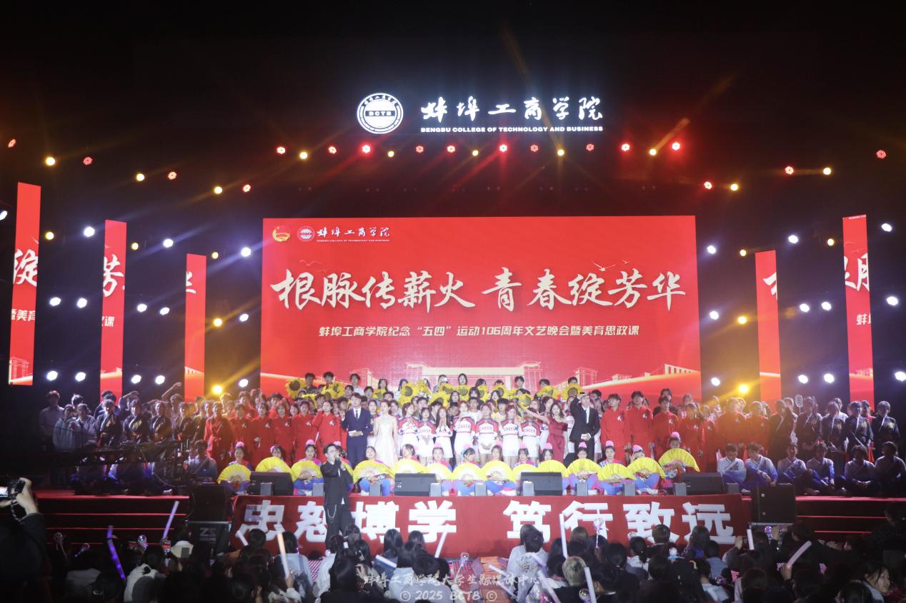 源流承古韵,心蕾耀韶光。5月9日晚,由校团委主办的“根脉传薪火,青春绽芳华”——纪念“五四”运动106周年文艺晚会暨美育思政课在我校操场隆重举行。校领导刘福成、汪时珍、江锋与2000余名师生在现场共同观看了这场融合传统与现代的艺术盛宴,以诗为魂、以梦为翼,共赴青春之约。