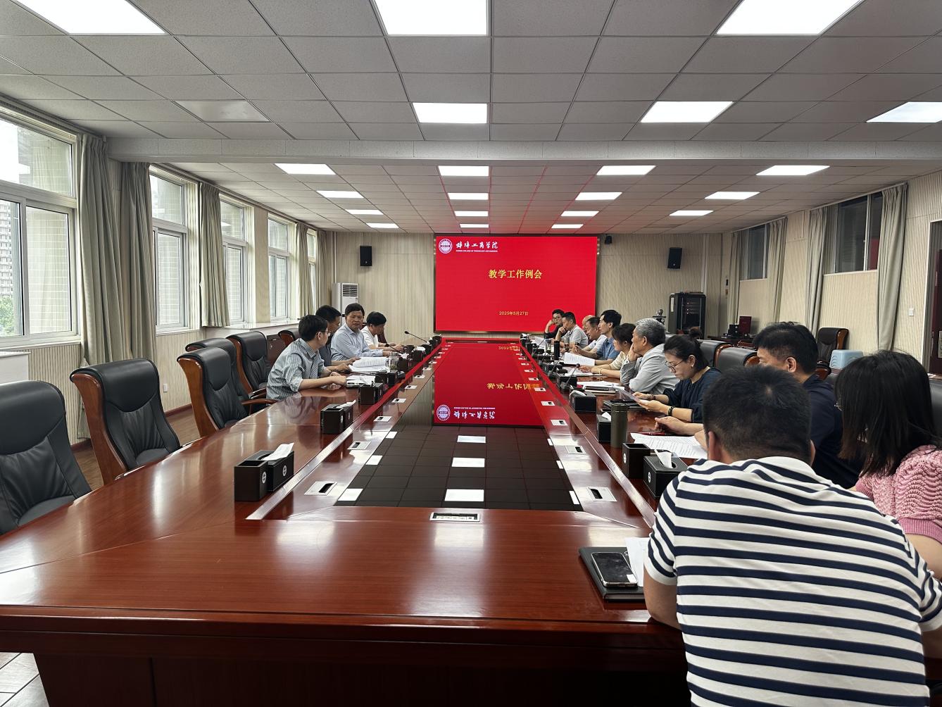 5月27日下午,我校在行远楼五楼视频会议室召开教学工作会议,讨论审议了《蚌埠工商学院教学工作量标准及核算办法(修订)》和2025年普通本科招生计划分配方案。党委副书记、校长刘福成,副校长汪时珍出席会议并讲话,教务处及相关职能部门、各学院(部)负责人参加会议,会议由汪时珍主持。