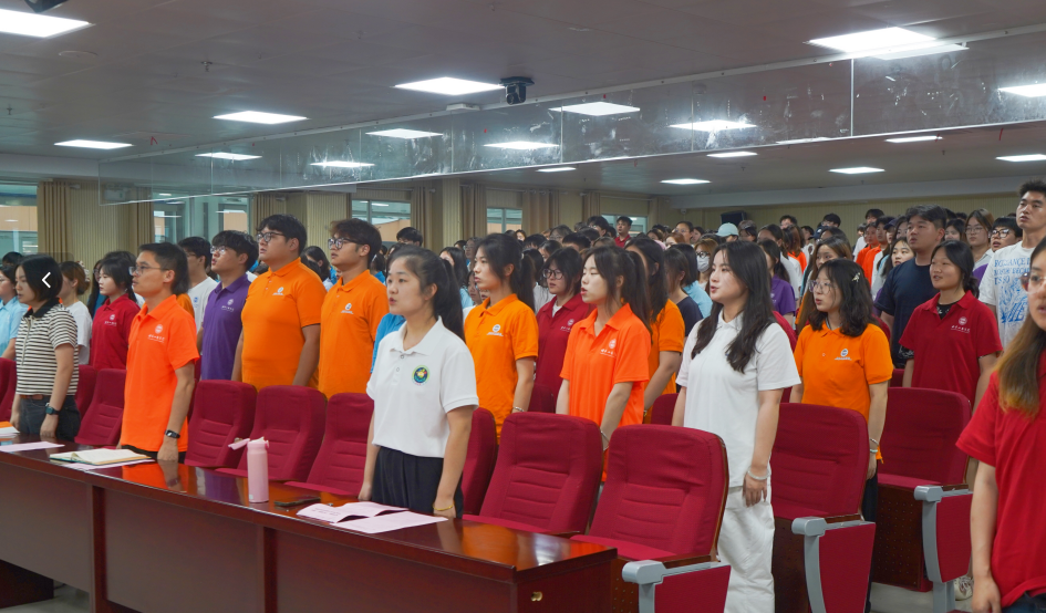 何佳代表全体2025年暑期“三下乡”暑期社会实践成员作出倡议,号召实践团队深入基层一线,以扎实行动做出实绩。铿锵有力的口号声中,大家展现出对实践活动的热切期待与坚定信心,并郑重承诺将以实际行动践行青春誓言,为社会发展贡献青春力量。