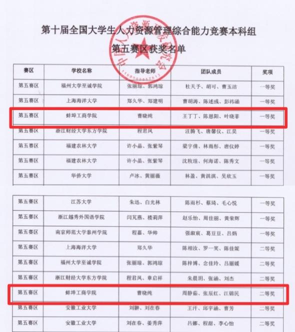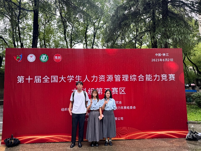 6月21日,由中国人力资源开发研究会主办、江苏大学承办、浙江精创教育科技有限公司提供技术支持的第十届全国大学生人力资源管理综合能力竞赛本科组第五赛区在江苏大学落下帷幕。由曹晓纯老师指导,管理学院王丁丁、陈恩阳、叶晓菲三位同学组成的“WINWINWIN队”和周静茹、张辰红、江锦民三位同学组成的“身藏不blue队”,凭借扎实的专业知识、出色的团队协作以及卓越的应变能力,从83支参赛队伍中脱颖而出,分别荣获大赛一等奖和二等奖的优异成绩。