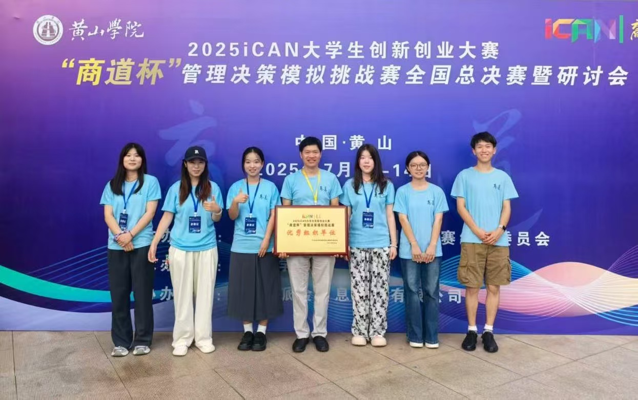 近日,2025年iCAN大学生创新创业大赛“商道杯”管理决策模拟挑战赛全国总决赛经过激烈的角逐拉下帷幕。蚌埠工商学院两支参赛队伍表现卓越,斩获全国总决赛一等奖1项、二等奖1项、优秀组织奖1项。其中,由蔡恩致、崔雅宁、谢方婷组成的“时代领航队”以现场小组路演答辩第一名的优异成绩强势晋级冠军争夺赛,并最终取得全国总成绩第四名的佳绩。金诺老师、周润老师荣获本届大赛“优秀指导老师”。