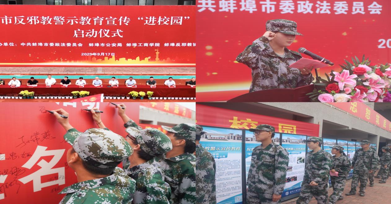 反邪教育明底线 树立正确价值观 为增强高校师生识别和抵制邪教侵蚀的意识和能力,营造“崇尚科学、反对邪教、文明和谐”的校园环境,2025年9月17日下午3时,由我校与中共蚌埠市委政法委、蚌埠市公安局、蚌埠市反邪教协会共同主办的蚌埠市反邪教警示教育宣传“进校园”活动启动仪式在我校运动场举行。市委政法委、市公安局、在蚌各高校相关负责人及我校2025级全体新生共同参加了此次活动。在活动现场,与会领导向学生代表发放了《反邪教知识手册》,学生干部代表庄严宣读“抵制邪教共建平安校园”倡议书,倡导全体同学崇尚科学、反对邪教,积极传播反邪教知识,共同守护平安校园。2025级新生还进行了“崇尚科学,反对邪教”集体宣誓。与会领导、老师和同学们在签名墙上签名,共同许下了“对邪教说不”的庄严承诺。