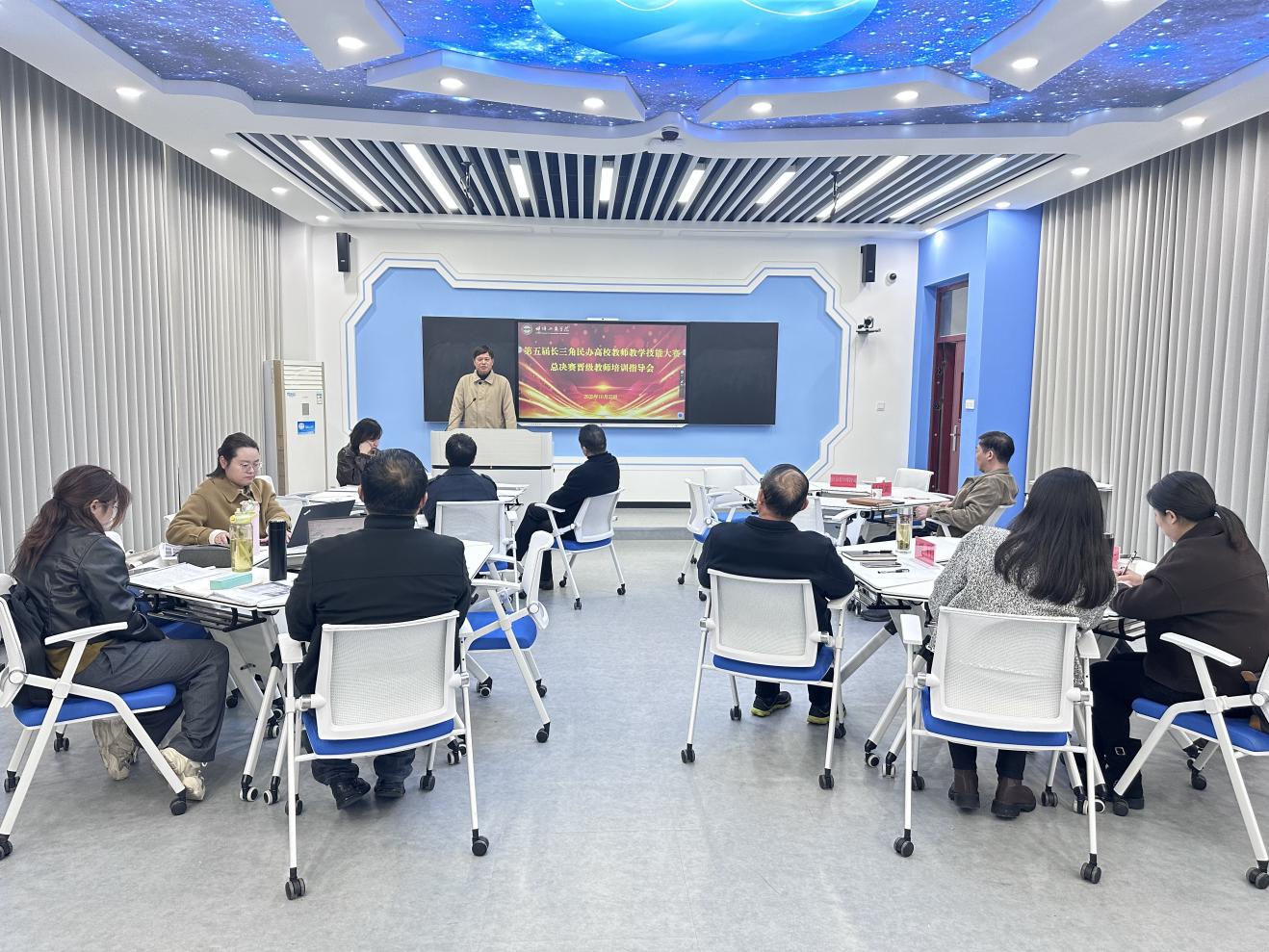 为全力备战第五届长三角民办高校教师教学技能大赛决赛,助力参赛教师取得优异成绩,10月22日下午,我校在格物楼智慧教室举行晋级作品专题培训指导会。会议特邀教学创新大赛国赛一等奖获得者廖晓慧老师及校内多名资深专家组成指导团队,对参赛教师的教学创新报告及现场汇报表现进行精准把脉与深度指导。校长刘福成、副校长汪时珍、教务处负责人、相关学院教学副院长、全体参赛教师出席会议。会议由教务处处长经庭如主持。