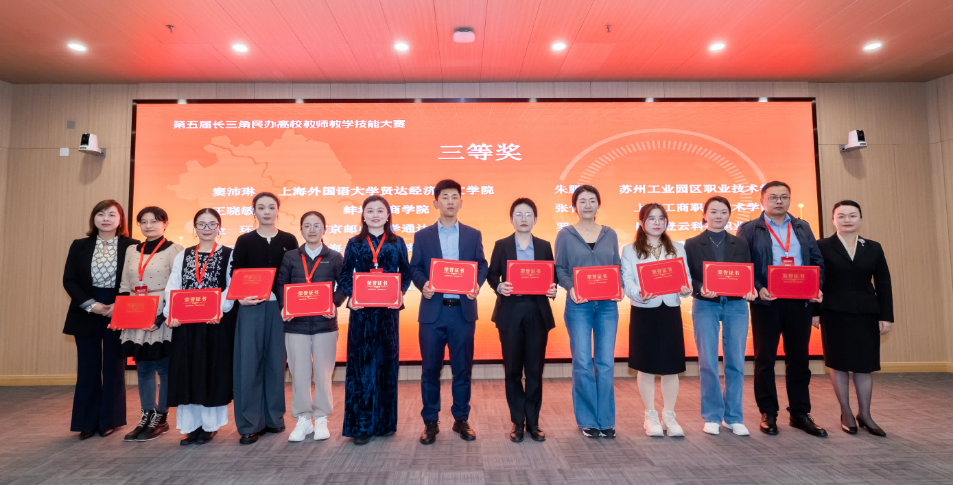 11月6日至8日,第五届长三角民办高校教师教学技能大赛省际决赛在上海圆满落幕。我校周翔老师荣获工科中级及以下职称组一等奖,仇艳老师获得文科高级职称组二等奖,王晓敏老师获得文科中级及以下职称组三等奖,实现了学校在此类高级别教学竞赛中获奖等级与数量的双重历史性突破。