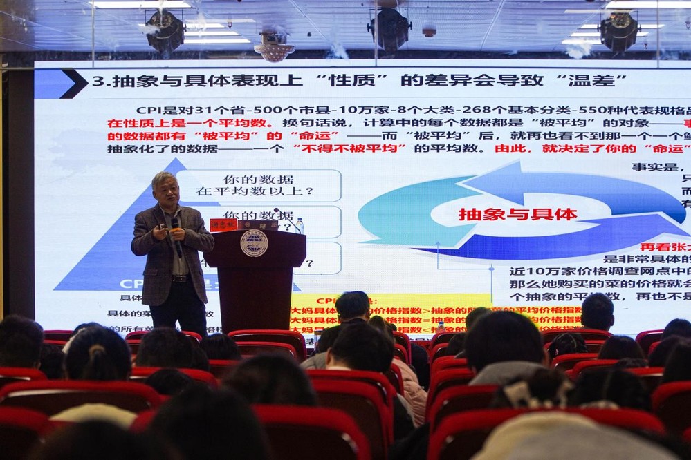 本场讲座既是一堂深入浅出的经济学与统计学的通识课,也是一堂大思政课。讲座不仅有效化解了师生关于数据与感受矛盾的困惑,还为大家走好人生之路树立了目标与方向。谢教授勉励大家将所学转化为内在力量,在经济变革与社会发展的浪潮中保持清醒、增强定力、勇担使命。讲座在热烈掌声中圆满结束。(文/桑启悦 图/崔梦宇 审/陈士超)