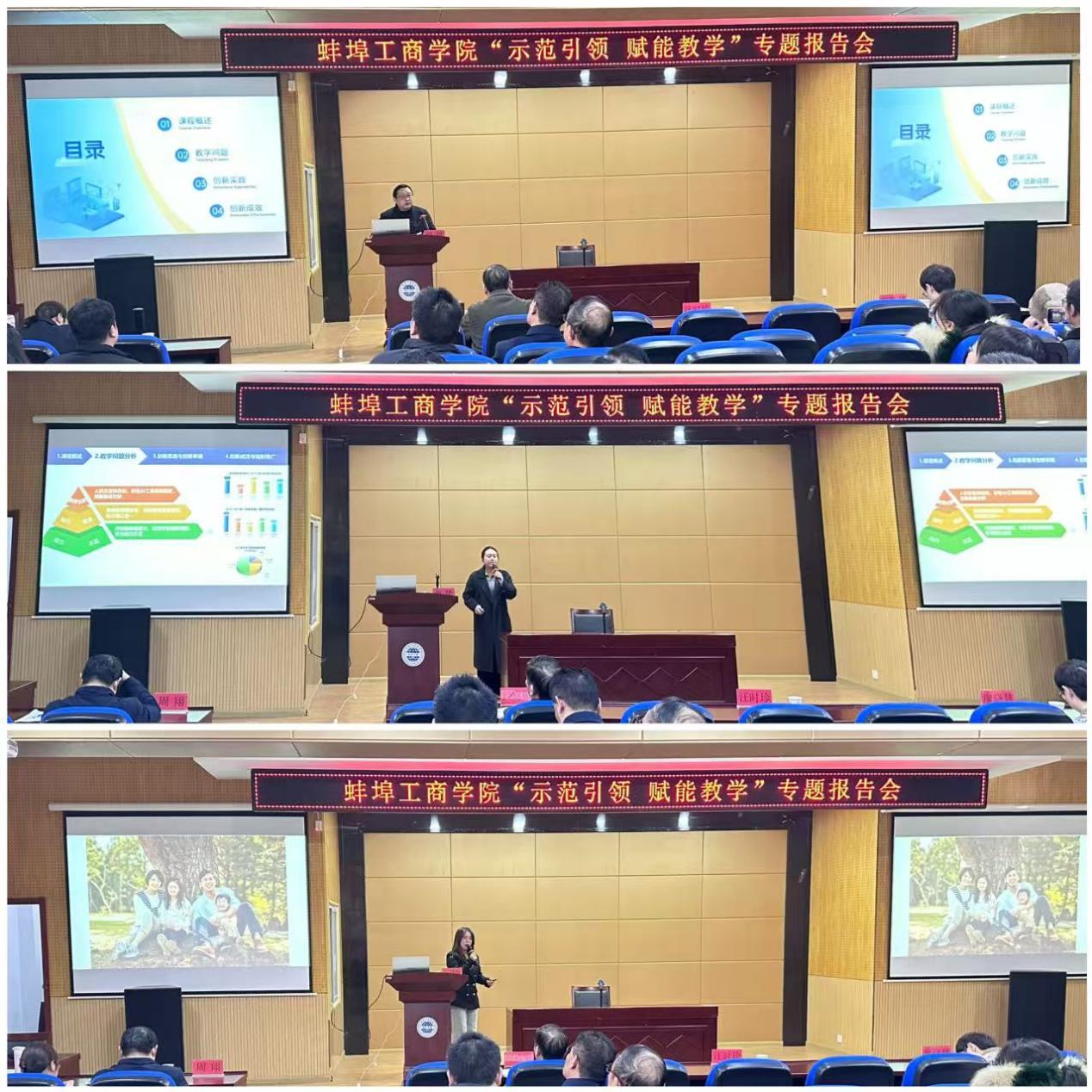 12月10日,我校在格物楼B101举行“示范引领 赋能教学”专题报告会,特邀首届全国高校教师教学创新大赛一等奖获得者廖晓慧教授作专题报告,并邀请我校在第五届长三角民办高校教师教学技能大赛决赛中获奖的周翔、仇艳、王晓敏三位教师进行教学示范展示。副校长汪时珍出席会议并致开幕词,来自各学院(部)的近300位教师参加会议。会议由教务处处长经庭如主持。