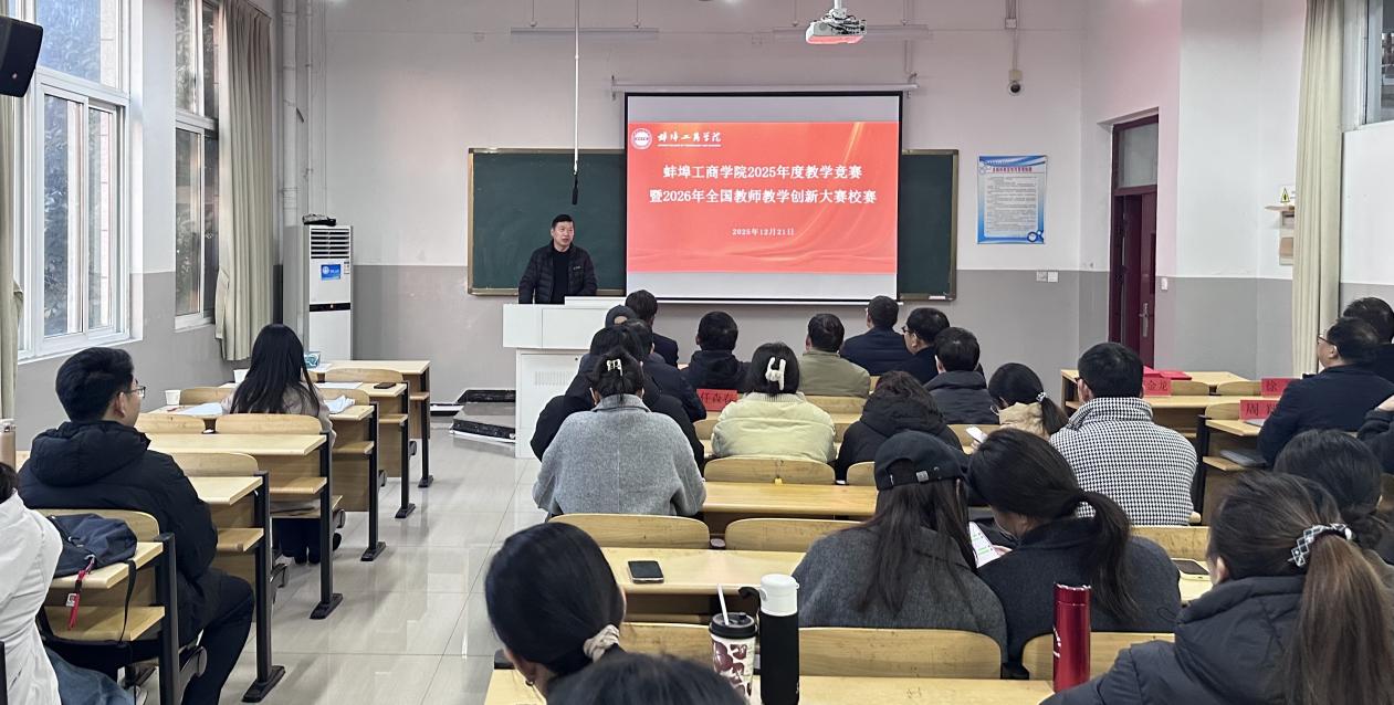 12月21日下午,我校在德润楼顺利举行2025年度教学竞赛暨2026年全国教师教学创新大赛校赛。学校邀请安徽财经大学、安徽科技学院、蚌埠学院等校内外专家担任评委。校长刘福成、副校长汪时珍出席赛事。大赛由教务处处长经庭如主持。
