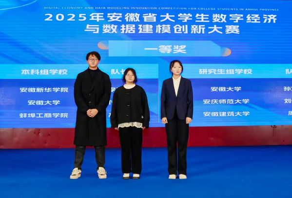 近日,安徽省大学生数字经济与数据建模创新大赛省级决赛圆满落幕。我校代表队凭借扎实的专业功底、创新的建模思路和出色的现场表现,斩获省级一等奖1项、二等奖1项、三等奖3项。