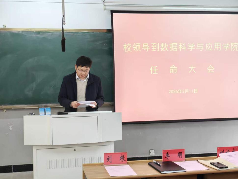 3月11日下午,校长刘福成、党政办主任李明一行赴数据科学与应用学院召开任命大会,学院全体教职工参加。