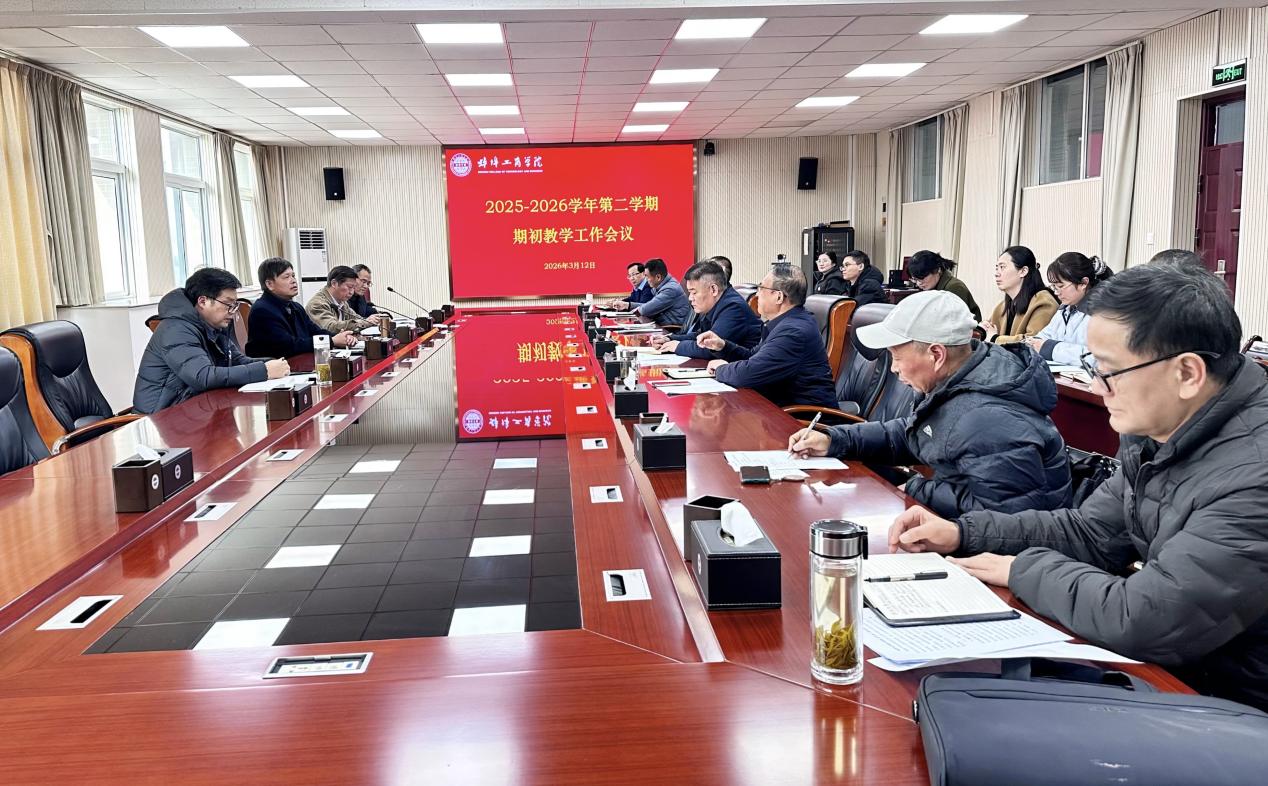 为全面部署新学期教育教学工作,扎实推进本科教学合格评估建设,3月12日下午,我校在行远楼5楼视频会议室召开2025-2026学年第二学期期初教学工作会议。校长刘福成出席会议并讲话,教务处、质量监控与评估中心、现代教育技术中心、科研规划处及学生处负责人,各二级学院院长、教学副院长参加会议。会议由经庭如主持。